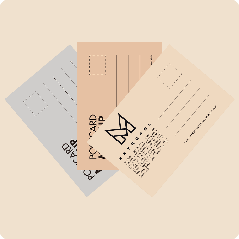 Professionally printed custom postcards perfect for marketing, invitations, or personal messages.